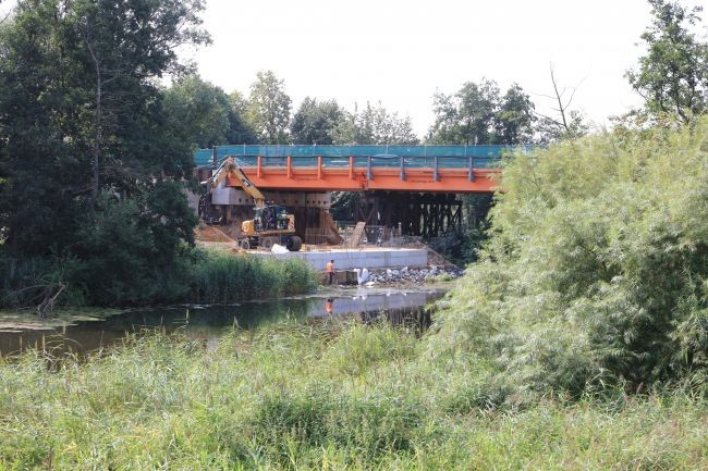 Behelfsbrücke während des Neubaus der Eiderbrücke