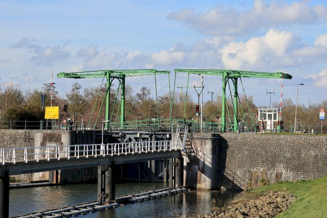 Bewegliche Brücke, Zugbrücke, Waagebalkenbrücke, Ophaalbrug