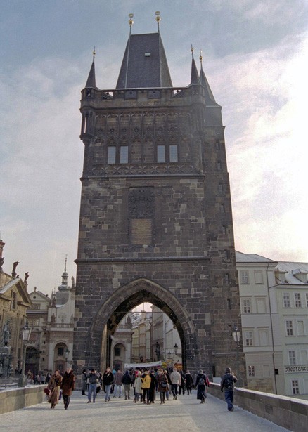 Informationen durch Heidi Zengerling: Die Karlsbrücke verbindet die Stadtteile Malá Strana und Staré Město. Der Bau wurde unter Karl IV. vollzogen, vorher stand eine Steinbrücke (Judithbrücke, 1158-1172)an der Stelle, die durch überschwemmung zerstört wurde (1342) Baumeister ist Peter Parler.