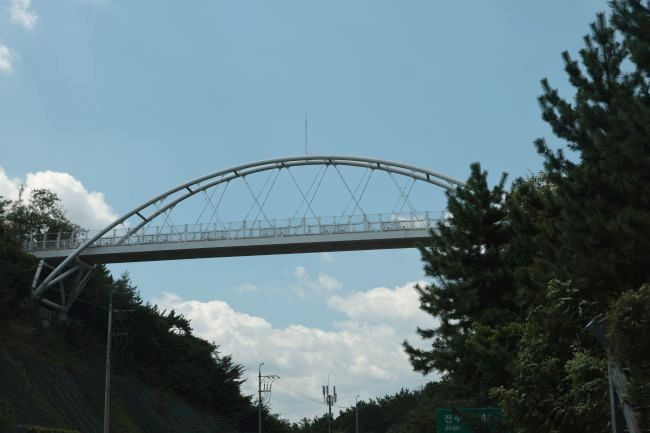 Bogenbrücke, Bogen über der Fahrbahn