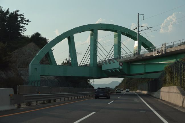 Bogenbrücke, Bogen über der Fahrbahn