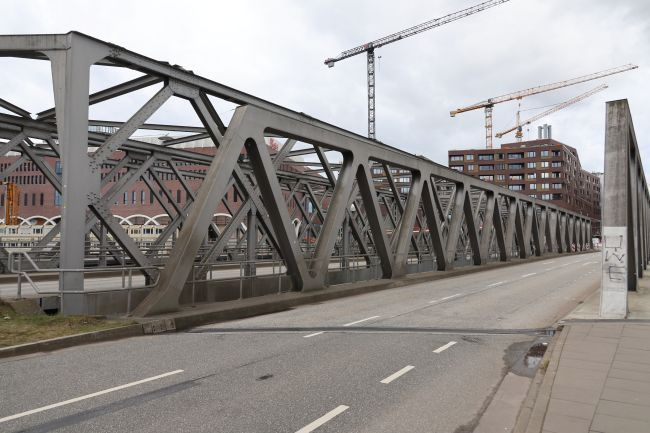 Die Brücken wurden durch einen dritten überbau ergänzt und um etwa 2,00 m angehoben. Nötig wird dies durch die neuen hochgelegten Strassen für die HafenCity