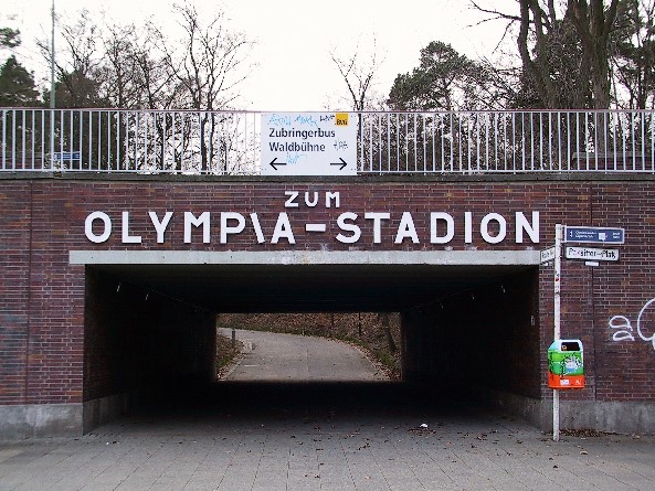 Die Brücke überquert im Zuge der Rominter Allee die Einmündung des Rossitter Weges auf den Rossitter Platz am U-Bahnhof Olympia-Stadion. Sie wurde mit Blick auf die Olympischen Sommerspiele in Berlin im Jahre 1936 fertiggestellt. Die R. besteht aus einer Eisenbeton-Konstruktion und hat eine Stützweite von knapp 8 m. Sie hat vier Fahrspuren und auf beiden Seiten Bürgersteige und Eisengeländer (Höhe etwa 1,3 m). Auf der Ostseite führen zwei Wege von der Brücke hinunter zum Rossitter Platz (und dort zur U-Bahn). Ebenso wie die Allee hat die Brücke ihren Namen nach der ostpreußischen Stadt Rominten (heute Krasnolesje in Russland). Die R. gehört zum Denkmalbereich der von Werner March entworfenen Gesamtanlage des neugestalteten Olympiageländes.