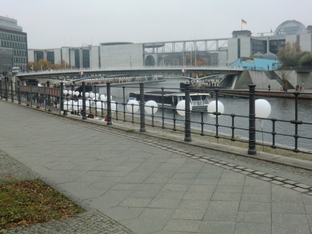Kronprinzenbrücke / Spree am 25. Jahretages des Mauerfalls, im Bildvordergrund