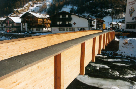 Querstreben zwischen Holzbrücken aus HE-Trägern