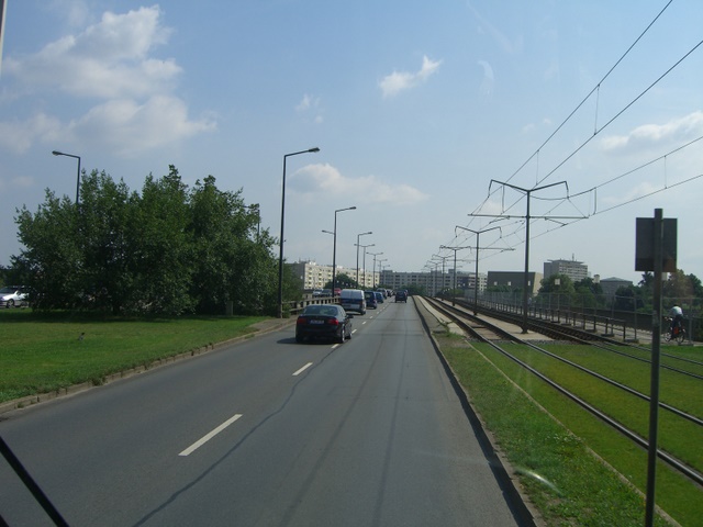 Die Brücke überspannte den Fluss mit drei Stahlbögen von etwa 60 Meter Weite auf Steinpfeilern und auf dem Altstädter Ufer mit zwei und dem Neustädter Ufer mit vier massiven Gewölbefeldern.