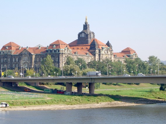Informationen von Hans-Joachim Wolprecht (19.02.2004): erbaut 1892/95 als Carolabrücke (n. sächs. Königin), 1945 zerstört, 1967/71 Neubau mit 3 Spannbeton-Voutenträgern als Dr.-Rudolf-Friedrichs-Br. (n. 1. Dresdner Nachkriegs-Oberbürgermeister, ursprl. SPD), seit 1991 wieder Carolabr.