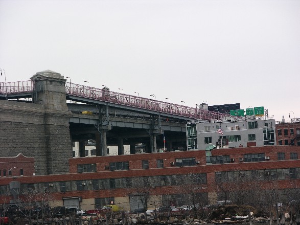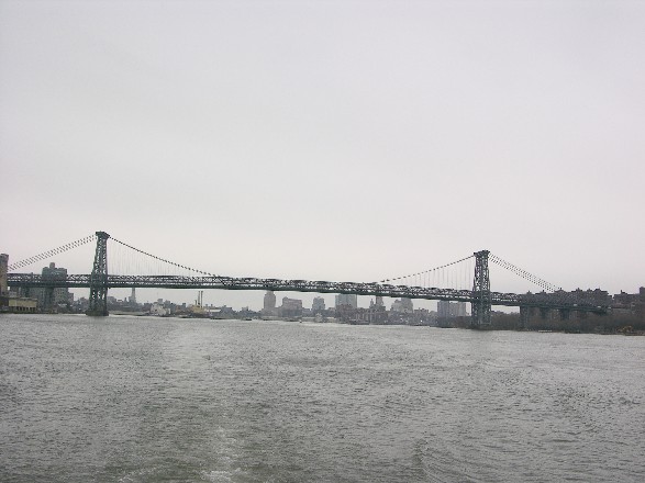Durch die Nachbarschaft zur Brooklyn Bridge, die in Sichtweite liegt, war von Anfang an eine Hängebrücke in der Planung. Eine Auslegerbrücke, die damals recht beliebt waren, wurde nicht in Betracht gezogen. ästhetische Gesichtspunkte waren genauso wichtig wie ökonomische, und beide beeinflußten den Ausführungsentwurf. So wurden die Tragkabel von den Pylonen gerade zu den Widerlagern geführt, ohne die Seitenfelder zu tragen. Dadurch konnten die Kabel wesentlich leichter und kürzer ausgeführt werden. Durch die leichte Stahlkonstruktion der Pylone konnten kleinere Fundamente gebaut werden, die bei allen Brücken einen großen Anteil der Kosten ausmachen. Die reine Fachwerkkonstruktion bedurfte einige überzeugungsarbeit, in einem zeitgenössischen Report hieß es: „Grob gesprochen, würden steinverkleidete Türme ein doppelt so großes Fundament erfordern, würde fünfmal so viel kosten und dreimal so lange dauern“[99]. Desweiteren könnten die leichteren Stahltürme höher werden als Steintürme, und dadurch erhielten die Kabel eine tiefere Bogenform, was geringere Zugkräfte und damit einen kleineren Durchmesser zur Folge hätte.