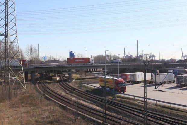 Die Hochstraße Elbmarsch ist mit 4258 m die längste Straßenbrücke Deutschlands. Bis zum Bau der Saale-Elster-Talbrücke war sie die längste Brücke Deutschlands.<br>Die Autobahnüberführung besteht in den Regelbereichen aus zwei 17,75 m breiten und 2,10 m hohen überbauten mit Stützweiten von 35 m. Die überbauten haben einen Plattenbalkenquerschnitt mit vier nebeneinander liegenden Spannbetonfertigteilträgern. Diese Längsträger lagern in den Pfeilerachsen auf 1,1 m hohen und 2,0 m breiten Querbalken unter welchen drei Rundstützen im Abstand von 6,6 m angeordnet sind. Die Stützen haben einen Durchmesser von 1,3 m und spannen in Bohrpfähle mit 1,5 m Schaftdurchmesser und 2,1 m Fußdurchmesser ein.<br>Im Jahre 2012 wurde bekannt, dass die Pfeiler auf ganzer Streckenlänge ausgewechselt werden müssen. Diese Arbeiten sollten voraussichtlich in den Jahren 2020 bis 2030 erfolgen.[1] Mittlerweile wird der Zustand als besser angesehen, sodass nur Reparaturen am Tragwerk und Erneuerungen von Regenabläufen, Fahrbahnbelag, Schutzplanken und den Metallkappen der Brückenränder anstehen. Gleichzeitig soll der Freiraum zwischen den Fahrbahnen für jeweils einen zusätzlichen Fahrstreifen pro Richtung genutzt werden, wonach aber immer noch ein Abstand von rund zwei Metern bleiben wird. Dies soll voraussichtlich ab 2017 erfolgen und bis 2023 abgeschlossen werden Die Hochstraße wird auch als K20 bezeichnet, während die Rampen in der Ausfahrt HH-Waltersdorf als K30 bezeichnet werden (Baulastnummer 649 (ASB 2425015)