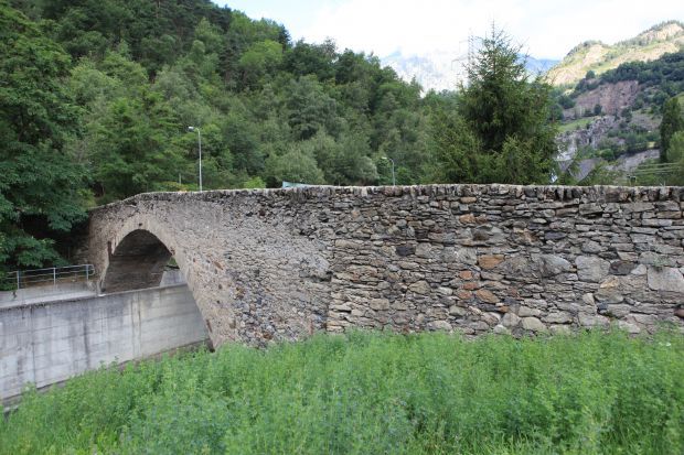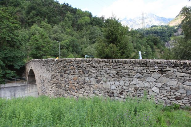 Als Teil der Talstrasse wurde diese Brücke um 1324 erstellt. 1544 berichtete eingewisser Johannes Stumpf von einer "schönen steinin prucken von einem schwybogen gemachtet". Nach 1766 war die Rede von Aufwendeungen für ein Wachhaus bey der Massenbrug. (Zollstation). Am 1.Juni 1799 fand bei der Brücke der Verzweiflungskampf der Gommer und Mörjer gegen die Franzosen statt.