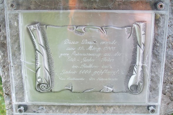 eine Tafel zum neben der Brücke gepflanzten Baum