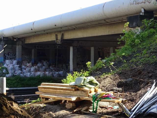 alte Heizleitungsbrücke im Bildvordergrund