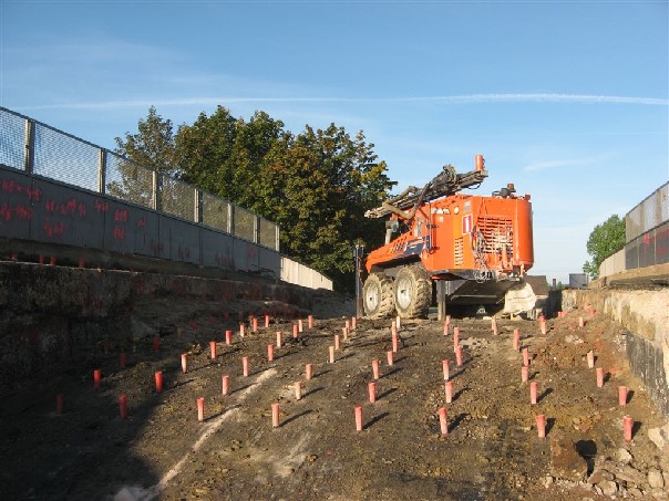 Die Sprengbohrungen sind vorbereitet
