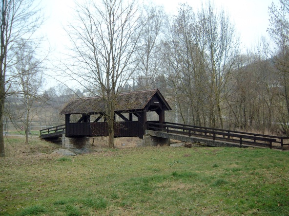 gedeckte Holzbrücke