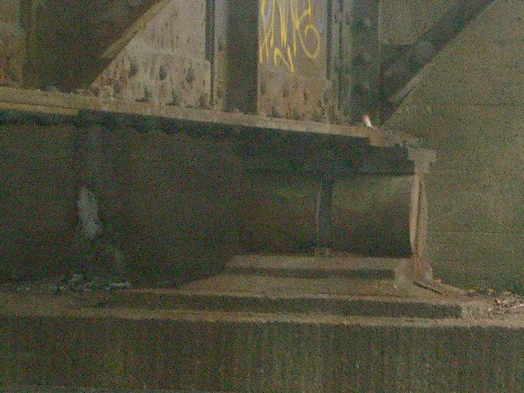 Die Widerlager dieser alten Brücke wurden zunächst nur für die Baufreiheit der BAS 81588 abgerissen, damit der Zugverkehr wieder rollen konnte. Mit Bildern vom 22.7.2016 wird gezeigt das auch die alten Pfeiler völlig abgreissen werden und der Schutt wird per Frontlader zunächst neben der Bahnböschung gelagert.