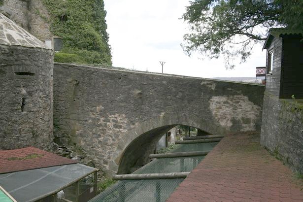 früher war zwischen der Brücke und dem Burgtor noch eine Zugbrücke angeordnet