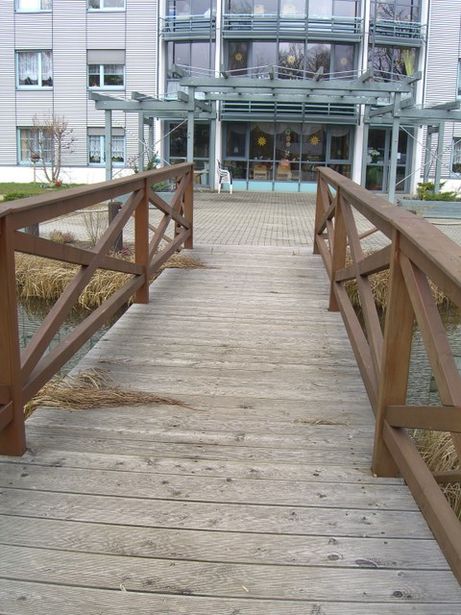 Fußwegbrücke / Gartenteich Seniorenanlage Markendorfer Str.