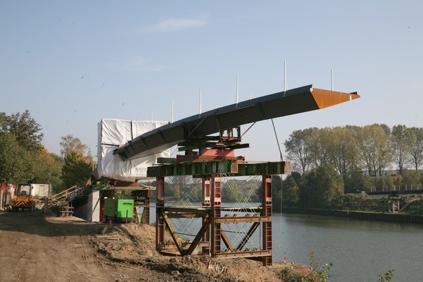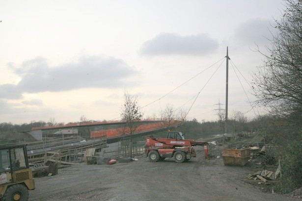 Am 25.10.2008 wurden die Stahlteile über den Kanal mit einem Schwimmkran montiert.