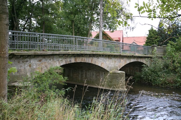 Die Brücke besteht aus behauenem Oberkirchener Sandstein. In alter Zeit bestand an dieser Stelle eine Furt.