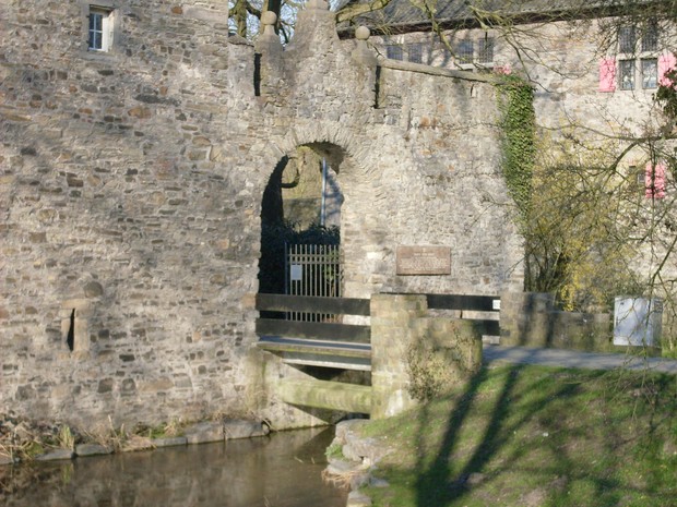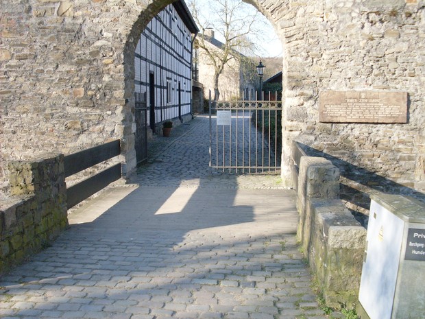 am Eingang der Wasserburg Haus zum Haus