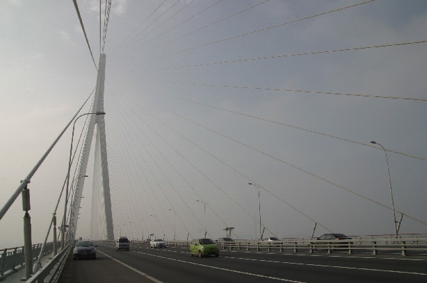 Zusätzlich zu der Schrägseilbrücke gibt es über einer zweiten Navigationsrinne eine Voutenträgerbrücke mit den Spannweiten 140+268+140m gebaut.
