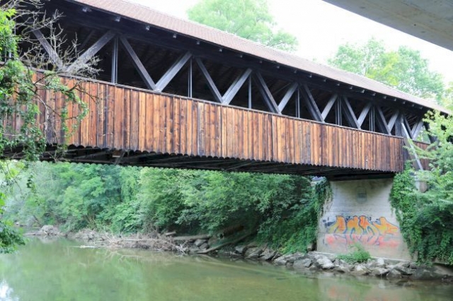 Covered Bridge, gedeckte Holzbrücke Fachwerkbrücke, Howe`sche Träger