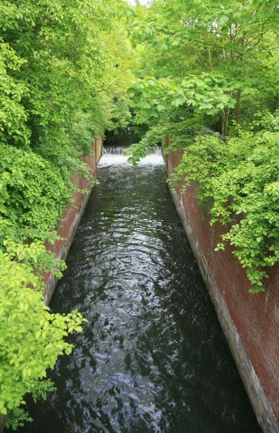 an einer rekonstruierten Schleuse der Fossa Eugeniana