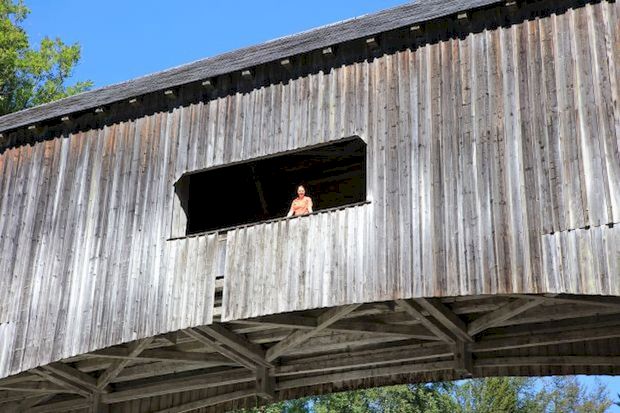 Covered Bridge, gedeckte Holzbrücke, Hängesprengwerk