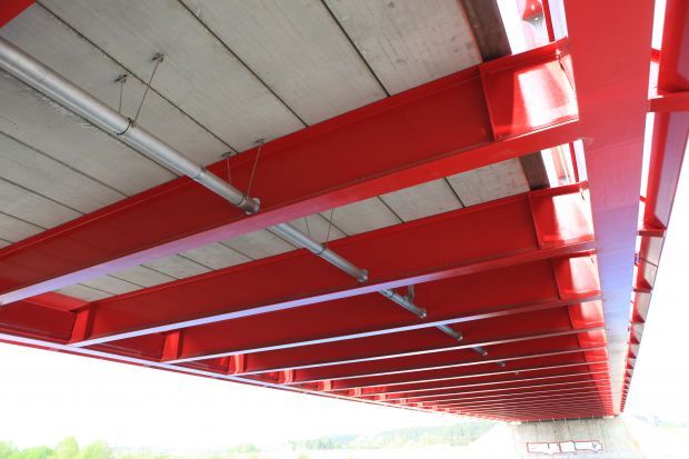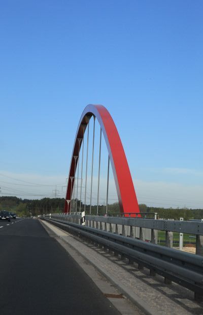 Bogenbrücke, Bogen über der Fahrbahn, Stabbogenbrücke