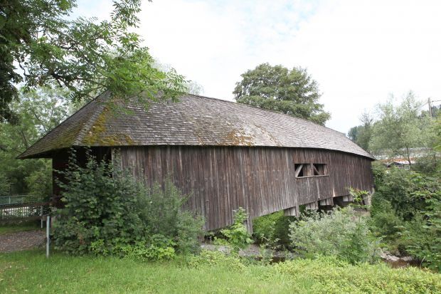 Covered Bridge, gedeckte Holzbrücke, Bogenbrücke (Stabpolygon)