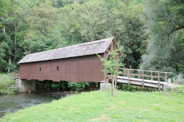 Covered Bridge, gedeckte Holzbrücke, Fachwerkbrücke (Multiple Kingpost, Hängewerk)