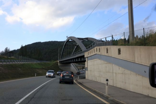 Bogenbrücke, Bogen über der Fahrbahn, Stabbogenbrücke