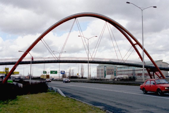 Bogenbrücke, Bogen über der Fahrbahn