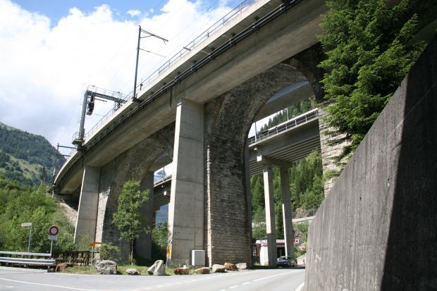 Bogenbrücke, Bogen unter der Fahrbahn, Balkenbrücke