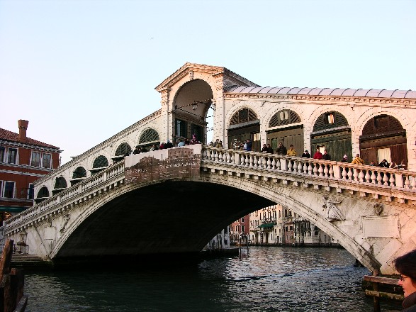 Hier stand vorher eine hölzerne Klappbrücke. Für den Bau einer neuen Brücke wurden von Michelangelo, Palladio und da Ponte Entwürfe eingereicht. Antonio da Ponte hatte den Dogenpalast nach einem Brand wieder aufgebaut und erhielt den Auftrag, obwohl er bereits 75 Jahre alt war. Die Widerlager sind auf jeweils 6000 Erlenstämmen gegründet. Gerüchte über mangelnde Standsicherheit führten zur Unterbrechung des Baues. Gutachten bestätigten jedoch die Sicherheit. Bald nach ihrer Fertigstellung überstand die Brücke ein Erdbeben ohne Schaden. Die Brücke erlaubte die Durchfahrt von großen Prachtgondeln und ist bis heute unverändert.