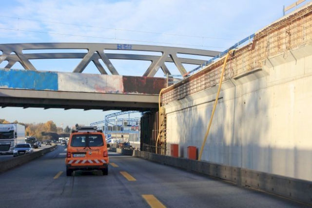 Für die Erweiterung der Autobahn auf 6 Spuren wurde zwischen dem 23.03.2012 und dem 26.03.2012 eine neue Fachwerkbrücke eingefahren.