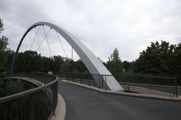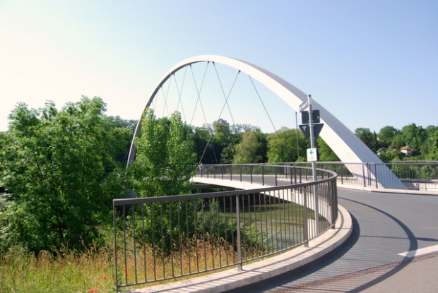 Bogenbrücke, Bogen über der Fahrbahn, Stabbogenbrücke