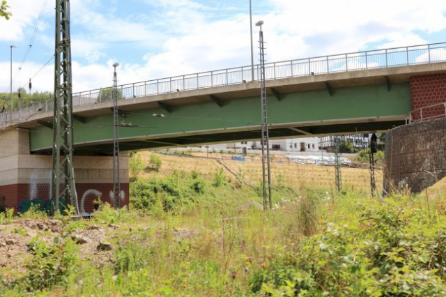 Vom 21.06.2013 bis zum 24.06.2013 wurden die Stahlträger und Betonfertigteile der Brücke in einer 72-stündigen Betriebspause der Bahn eingebaut.