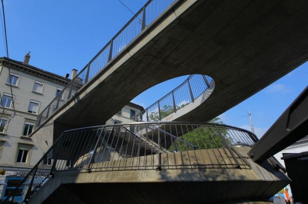 Bogenbrücke, Bogen unter der Fahrbahn, Spannbandbrücke