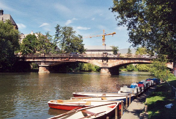 erstmal 1250 als steinerne Brücke urkundlich erwähnt, lange Zeit Marburgs einzige Brücke; mehrmals eingestürzt und wieder aufgebaut, 1891-1892 wurde die heutige Brücke errichtet