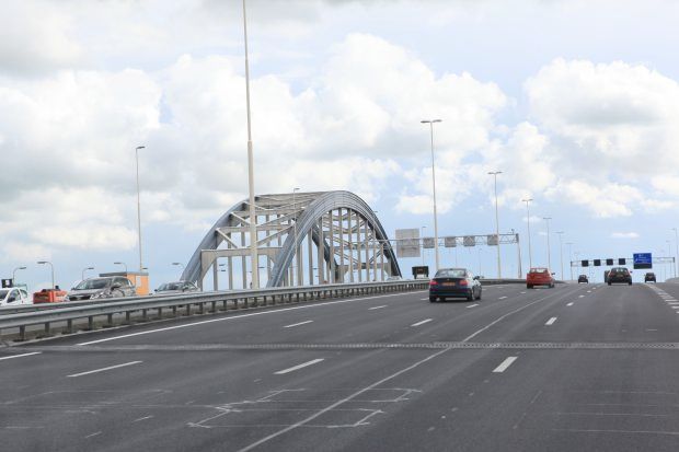 Bogenbrücke, Bogen über der Fahrbahn