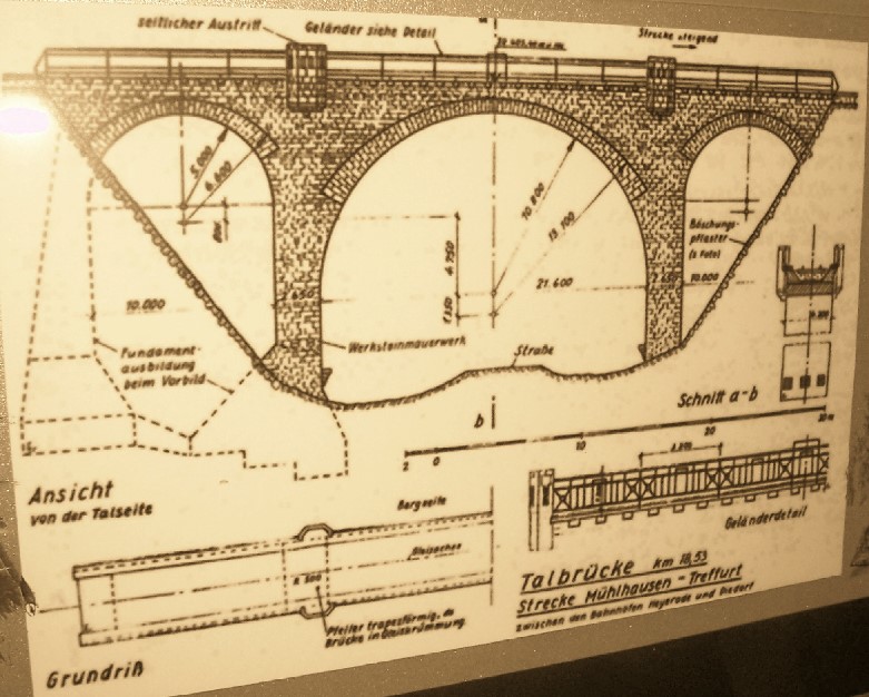 Die Brücke befindet sich in Heyerode, das ist 15 km von Mühlhausen entfernt und wird seit Mai 2005 als Rad- und Wanderweg genutzt. Die Brücke wurde 1911 gebaut und die Bahnlinie am 30.06.1911 eröffnet. Anfang der 70er Jahre begann der Rückbau der Bahnstrecke. Am 29.09.1968 fand die letzte Fahrt über die Brücke statt.