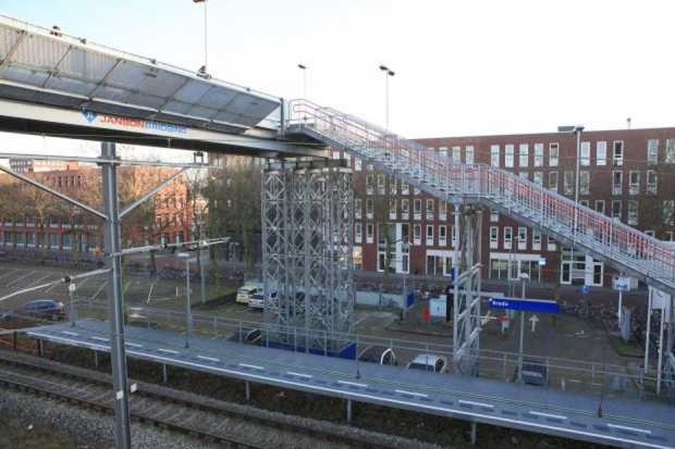 Behelfsbrücke der Firma Janson Bridging während der Bauzeit des neuen Bahnhofs