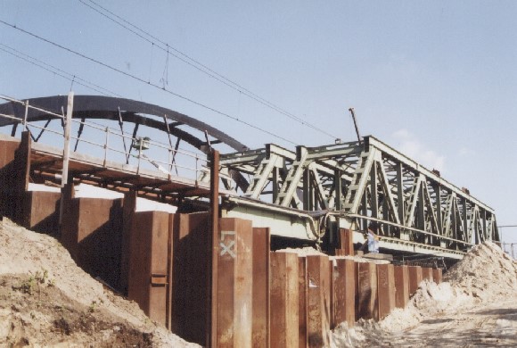 Bogenbrücke, Bogen über der Fahrbahn, Stabbogenbrücke