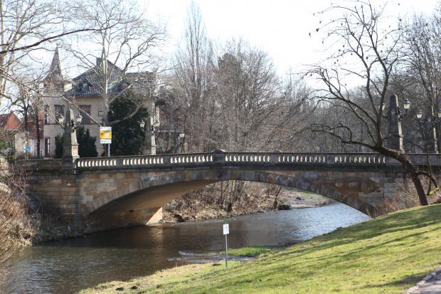 Instandsetzung: 1988 und 1998 das besondere an diesem Bauwerk ist die Verschönerung mit 4 Obelisken mit je zwei gusseisernen Kandelabern. Die Wappen an den Stirnmauern erinnern an die Zeit, in der die Stadt Erfurt zu Preußen gehörte