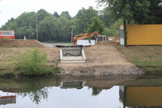 Am 26.07.2014 wurde der stählerne überbau mit einem Auokran eingehoben.