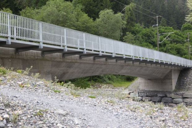 Die Brücke wurde neu errichtet, nachdem mehrfach Murenabgänge den Bahnverkehr bedroht haben und auch zu Entgleisungen geführt haben. Die neue Brücke wurde 3 m höher als die alte angelegt und defaur die Bahnstrecke in beide Richtung auf je 500 m Länge angehoben.