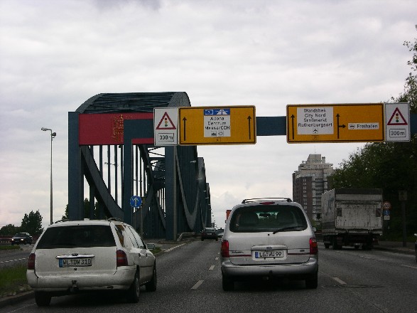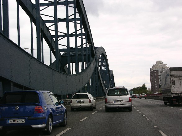 Zwei seitlich angefügte Bauwerke von 1957 und 1960 : Hohlkasten; 2-stegiger Kastenträger mit orthotroper Platte, Länge 304 m, Breite 15 m, Brückenfläche jeweils 4723 m²