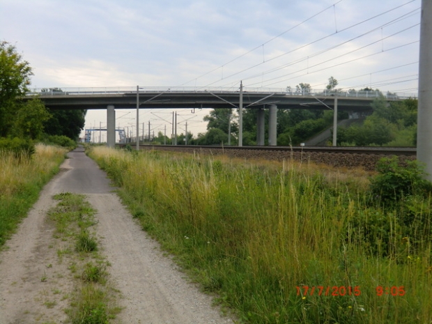 Fußwegbrücke zum Bf. Möhringen / EU Strecke Stendal - Wolfsburg, im Bildhintergrund