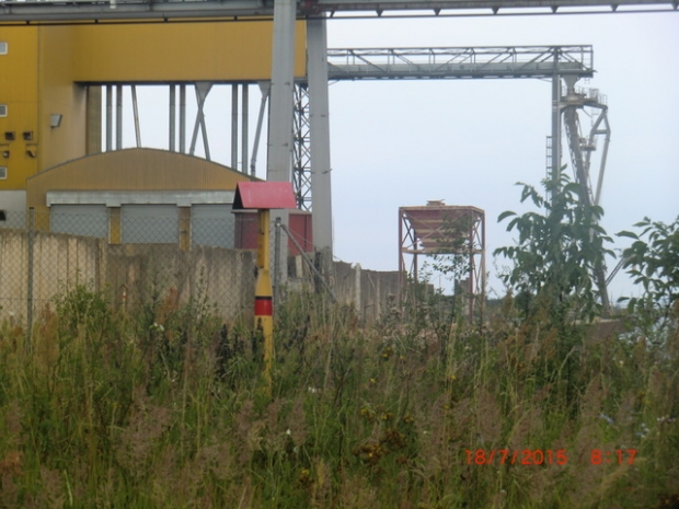 Transportbandbrücke am Silo/ Hafengelände, im Bildvordergrund